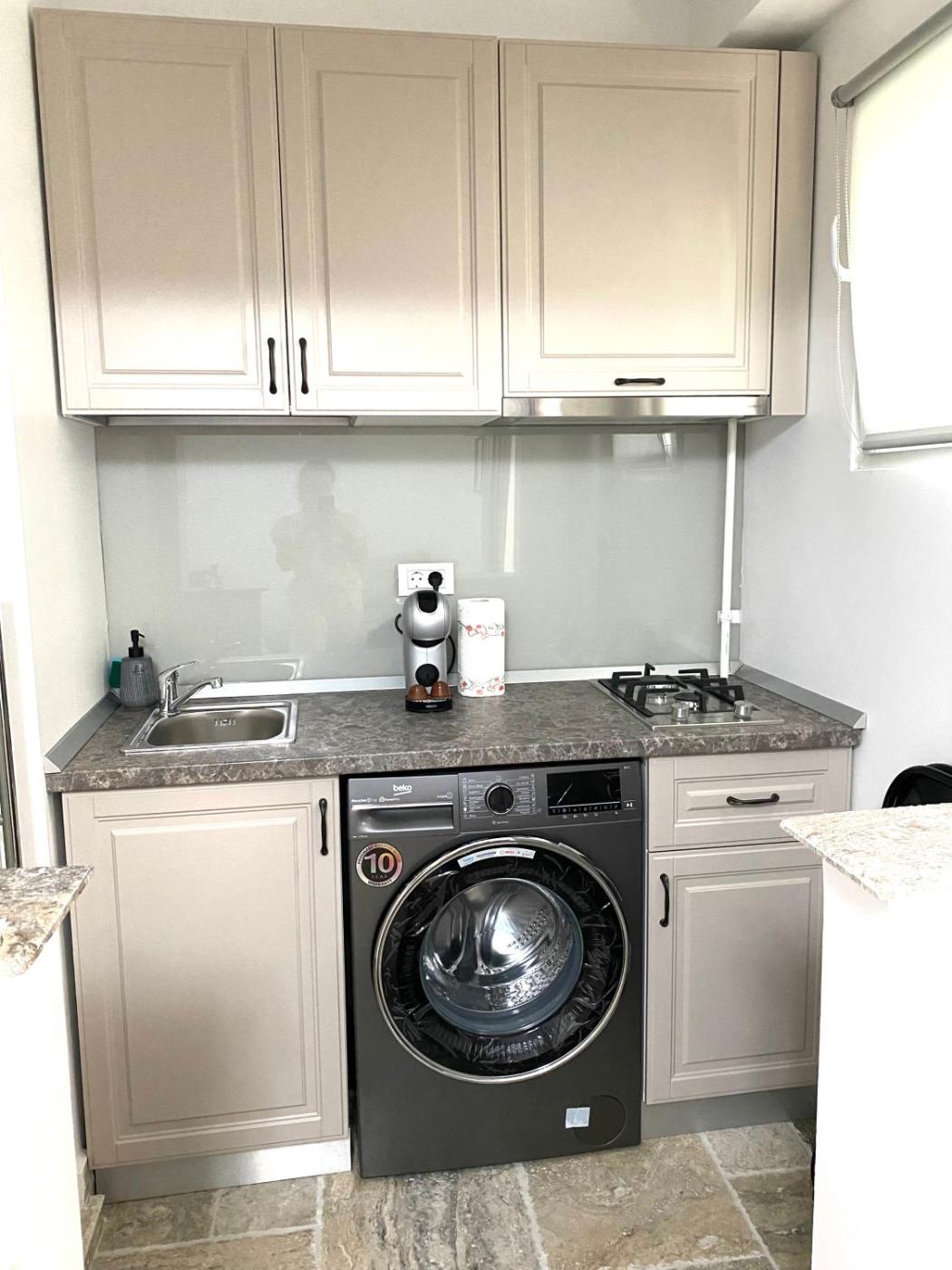 One-Bedroom Apartment. The air-conditioned apartment has 1 bedroom and 1 bathroom with a bath or a shower and a hairdryer. A kitchen fitted with a stovetop and a refrigerator is available for cooking and storing food. This apartment features a washing machine, soundproof walls, flat-screen TV, as well as winechampagne for guests. The unit has 1 bed.