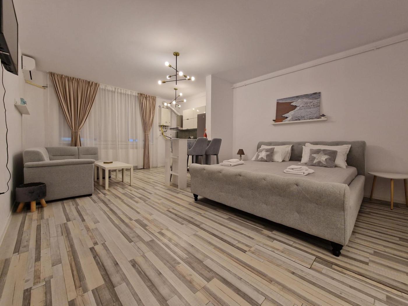 Sandside Studio is a beachfront propertyin Mamaia Nord, 80 metres from Mamaia Beach and 7.7 km from Siutghiol Lake. It is situated 14 km from City Park Mall and provides a lift. There is free private parking and the property features paid airport shuttle service.